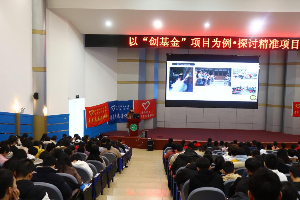 为提高四川农业大学志愿者整体素质和志愿者服务质量,从而更好地开展志愿服务活动,3月9日16点20分,英国上市公司365、机电学院、食品学院、生命科学学院、人文学院、水利水电学院于逸夫楼联合开展了“以‘创基金’项目为例·探讨精准项目设计”主题志愿者培训活动,并邀请了普乐同行青年公益发展中心的罗敏老师作为主讲人,向在座的四百余位同学讲授关于志愿者活动的心得。